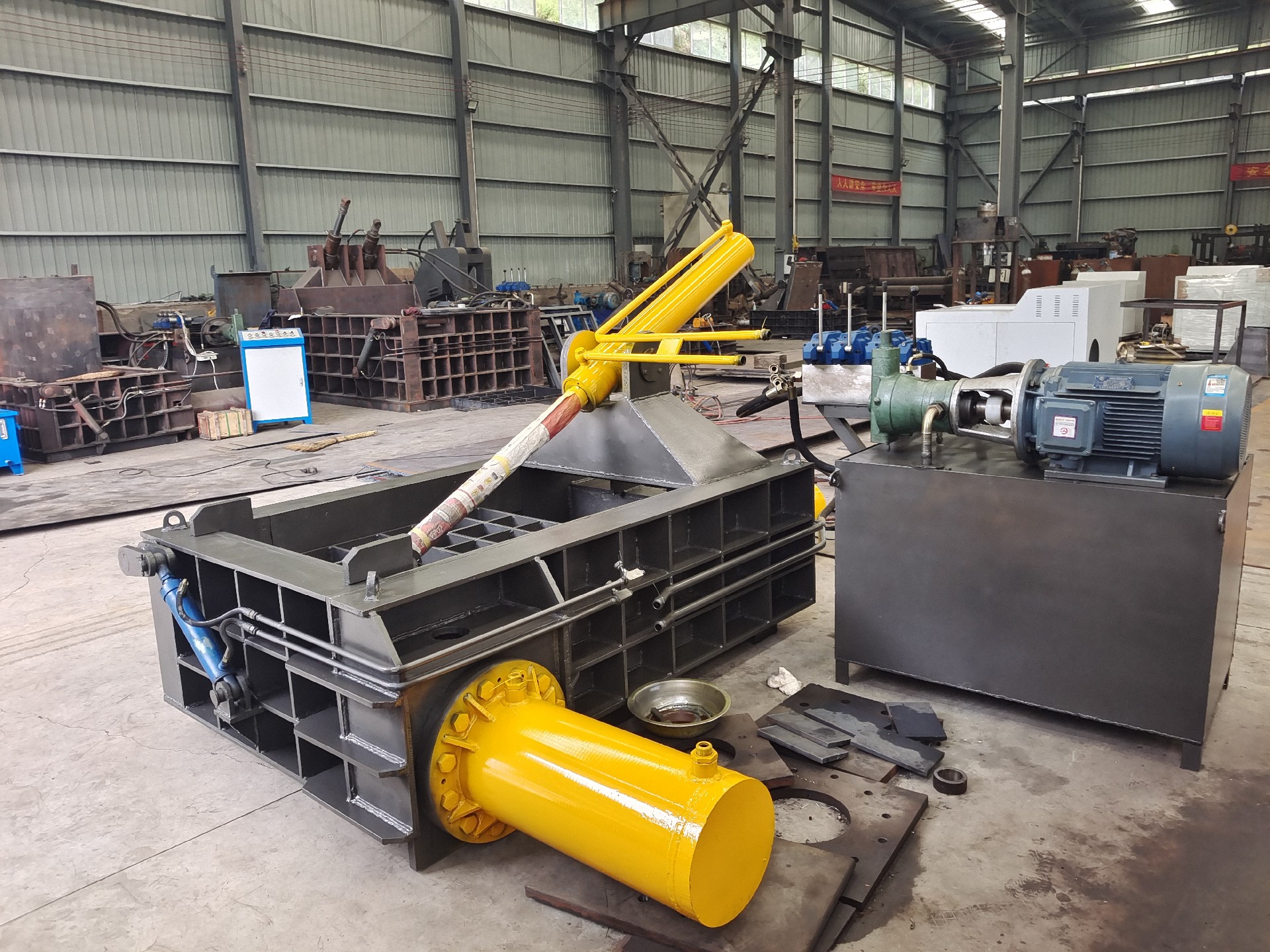3、设备加装冷却系统,**废钢压块机的连续工作能力,降低故障发生率,冷却系统以水冷为主;